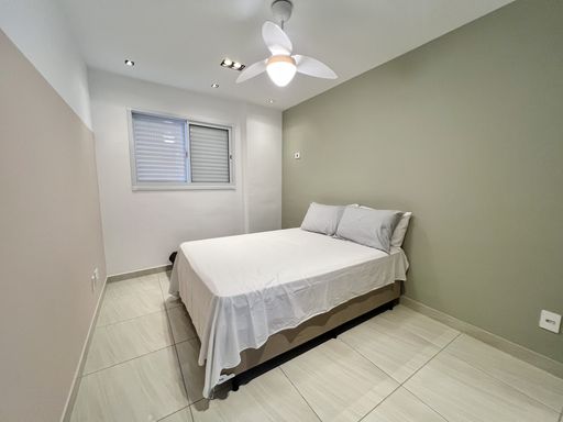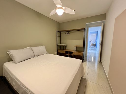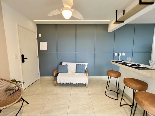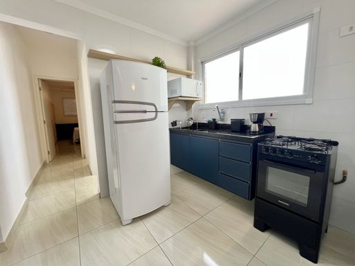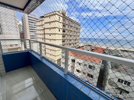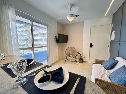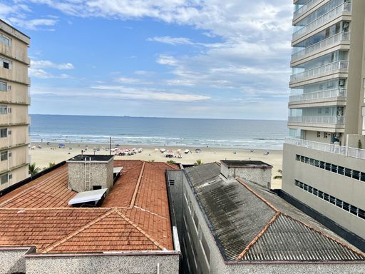 Apartamento com 1 Dormitório, Sacada com Vista Mar, Sala, Cozinha Americana, Área de Serviço e WC.