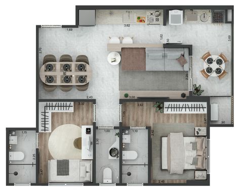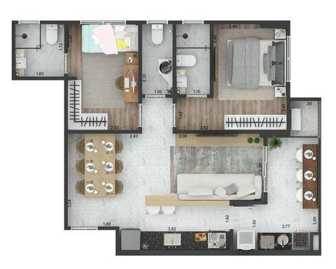 Apartamentos com 2 Dormitórios sendo 2 Suítes, Sacada Gourmet com Churrasqueira a Carvão, Sala Dois Ambientes, Cozinha, Área de Serviço e Lavabo