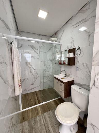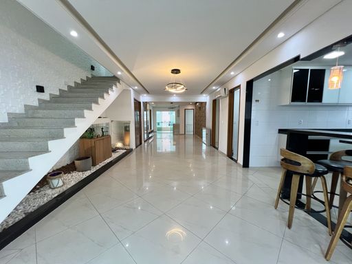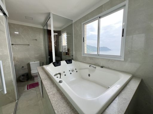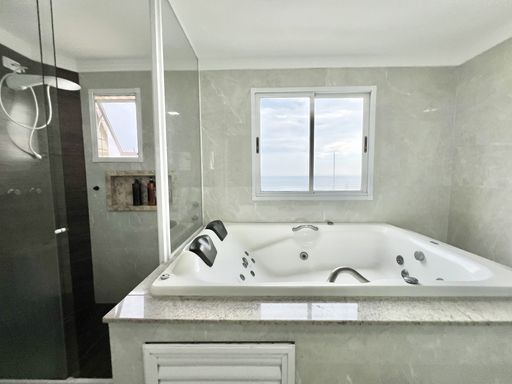 Andar Inferior: 3 Suítes sendo uma Master com Closet e Hidro, Cozinha, Duas Sacadas com Vista Mar e Vista livre e Lavabo